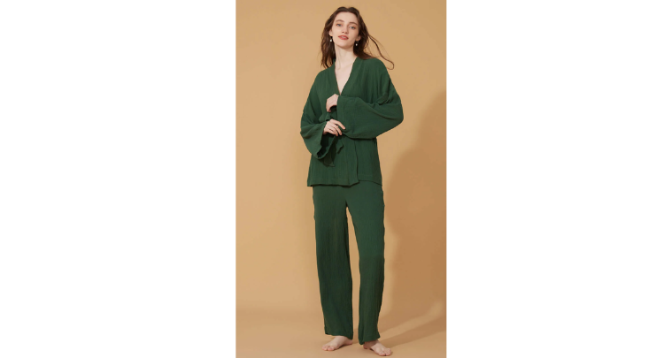 To get a perfect blend of comfort and style, buy Double Gauze Cotton Robe and Pants Pajama Set, for just $98.00.