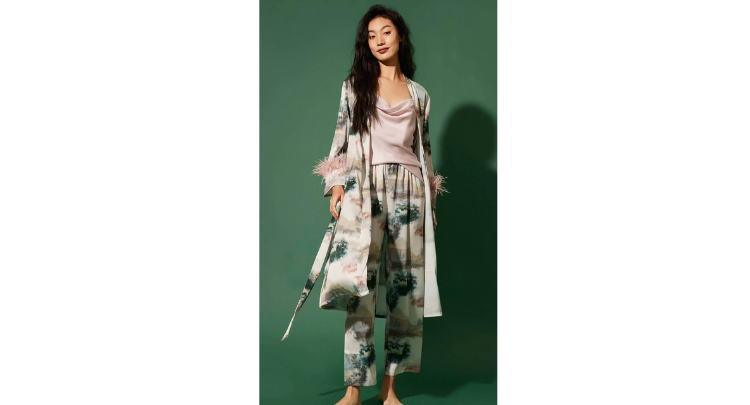 To get the mimics of the feel of authentic silk, buy Landscape Pajama Set 3pcs Feather, for just $136.00.